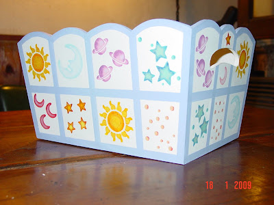 1. Que hermoso!, ese estencil es muy lindo, pero va también en la combinación de colores y en que no se te corrió ni un poquito la pintura...felicitaciones!