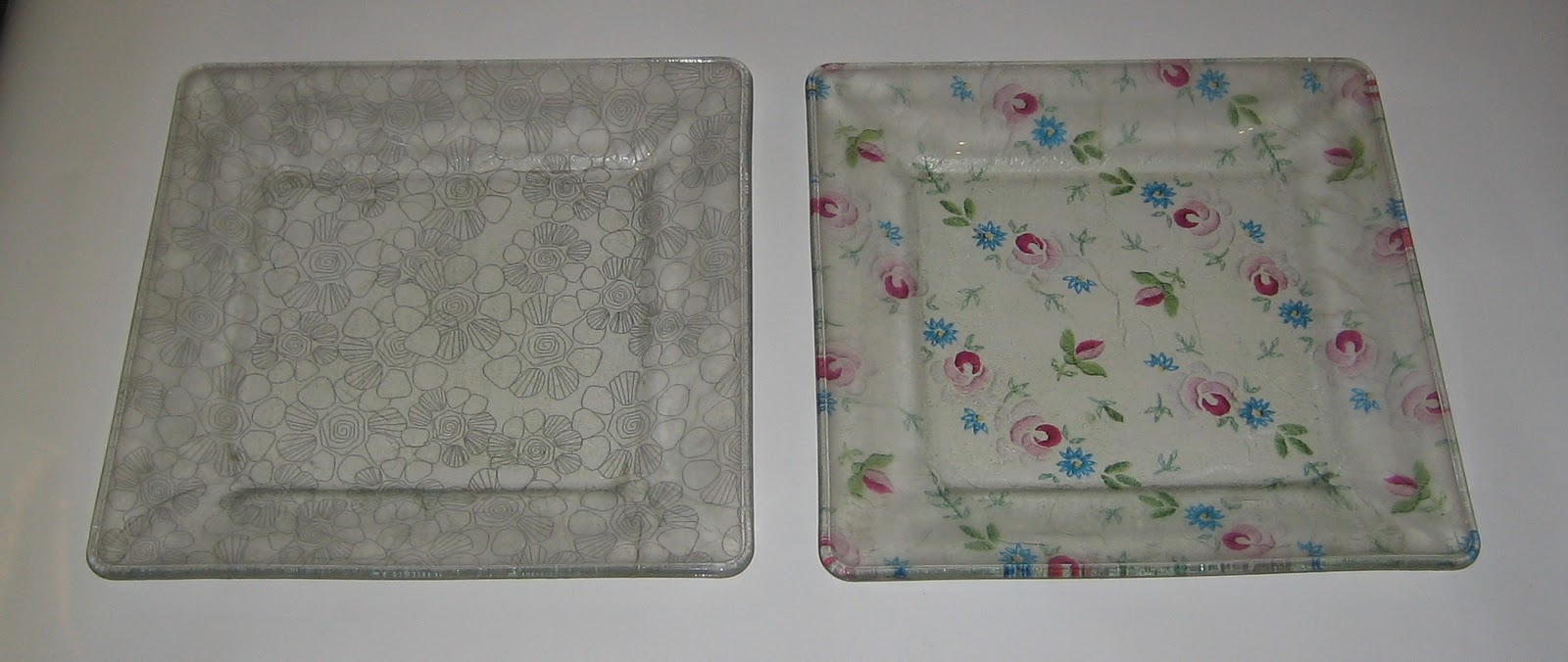 Platos playos de vidrio cuadrados con decoupage, 26 cm por 26 cm,