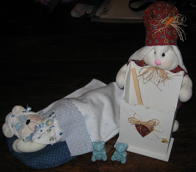 De parte de Moni, "Lucas", dulce y dormilón para Sofi, un hermoso porta cucharas para mí, y jabones de ositos para las dos.