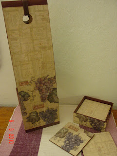 Portabotella y posavasos con decoupage |