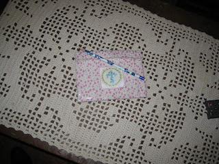 Hice esta libreta con bolsillos adentro y detalle de decoupage para que Elena guarde allí sus oraciones, ella reza el Rosario todos los días.