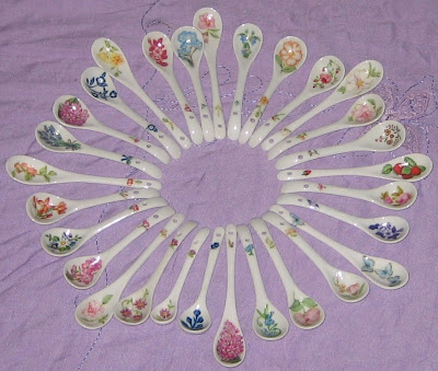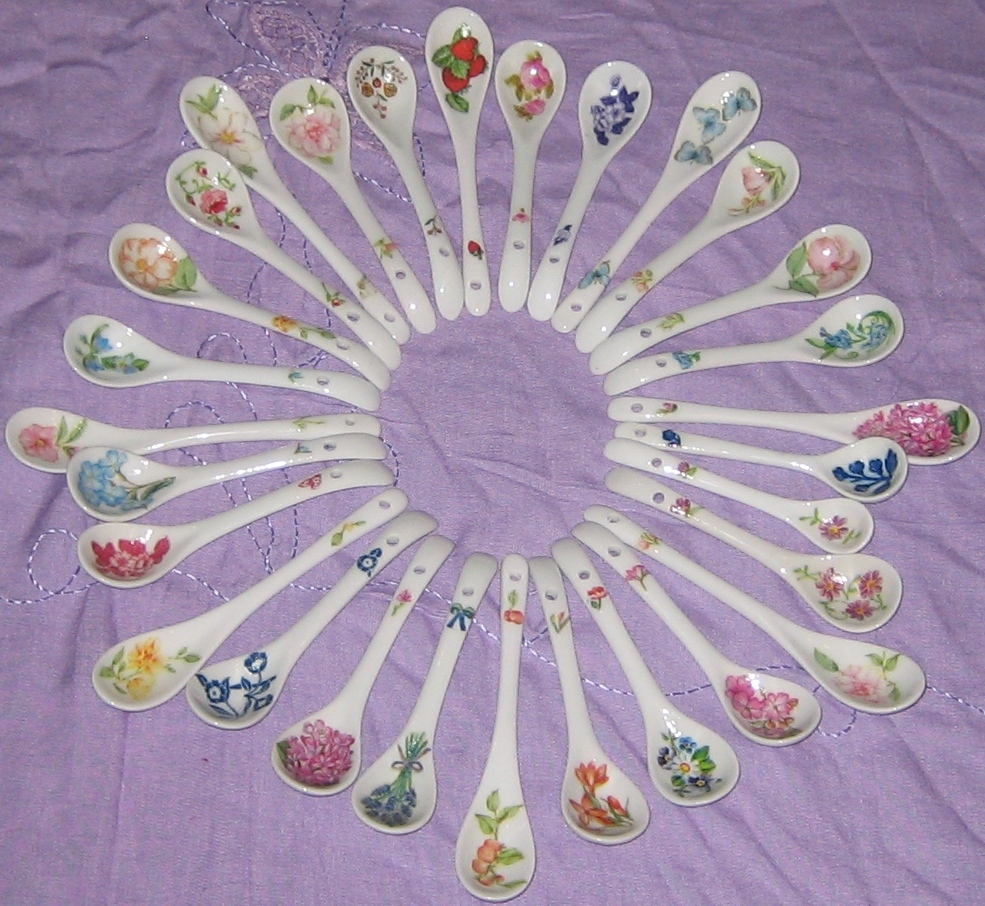 Cucharitas de porcelana con decoupage de recortes de servilletas y pañuelos de papel