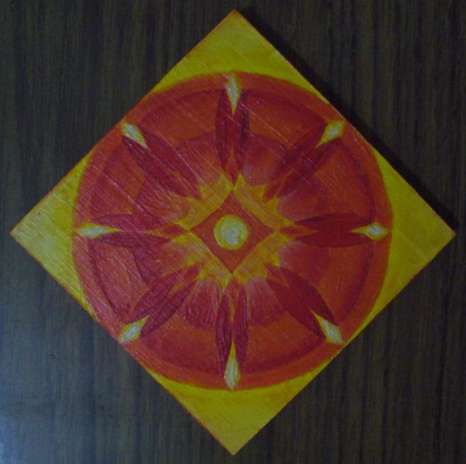 Cuadrito con mandala que pintó mi hija María con acrílicos