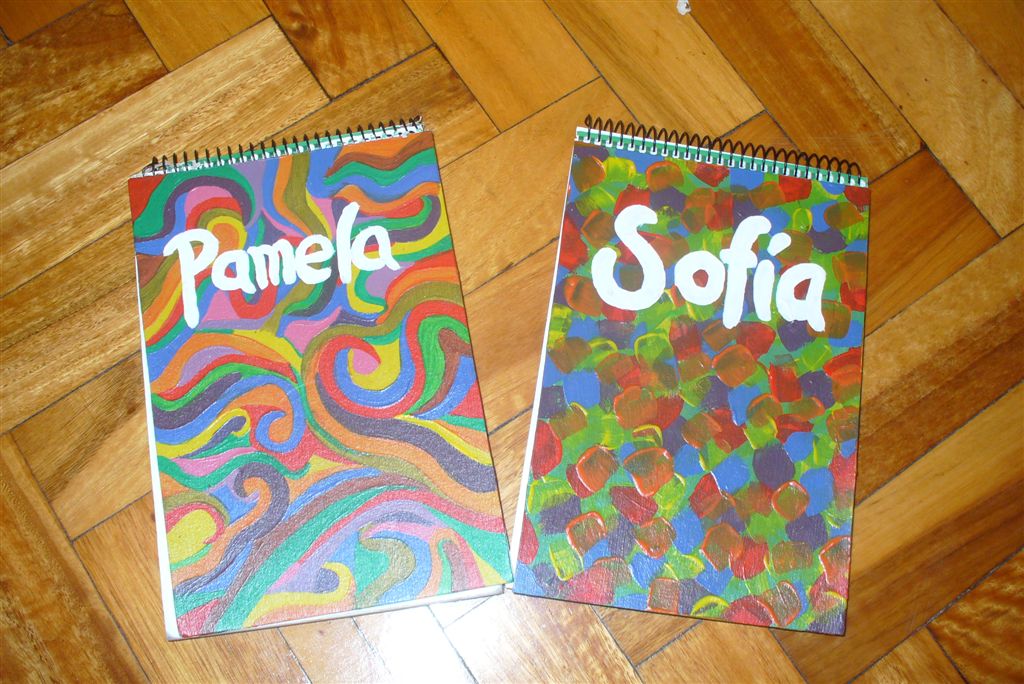 Anotadores que hizo mi hija María, pintura con acrílicos