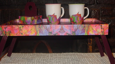 Conjunto de bandeja de cama, tazas y portasaquitos con decoupage