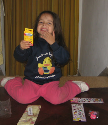 También, su hija Sofía, le envió regalos a mi nieta Sofi, aquí la foto de la pequeña muy contenta