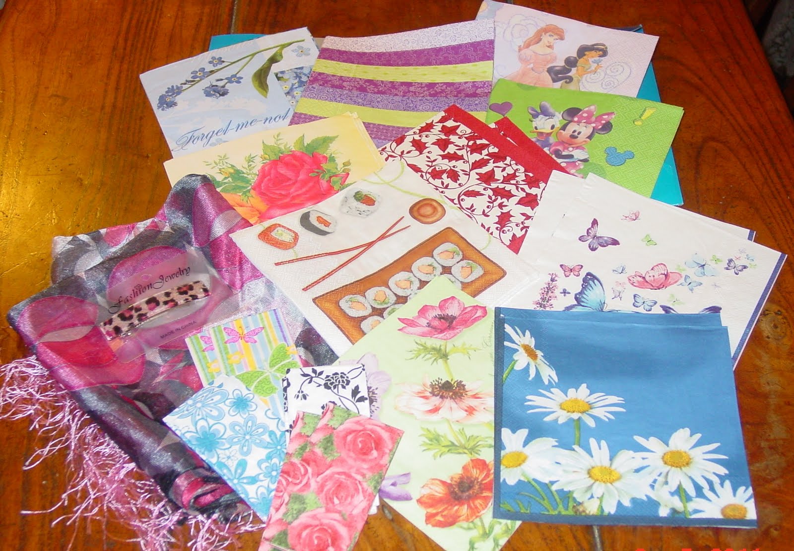 Sandra, preciosos colgantes y lindísimo todo lo que te han regalado. Con esas servilletas harás maravillas. Un beso