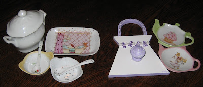 Graciela, estas hermosas porcelanas pintadas por ella, también una azucarera, una perchita y teterita para Sofi y otra para mi hija María. Y una linda pulsera que hizo Flor, hija de Graciela, para Sofi, que faltó en la foto.