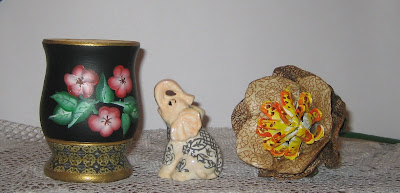 Y principalmente, agradecerte estos tres lindísimos regalos que formaron parte del desafío, la flor, el elefantito y el precioso mate que pintaste y que será el primero de una colección que hace tiempo quiero tener.