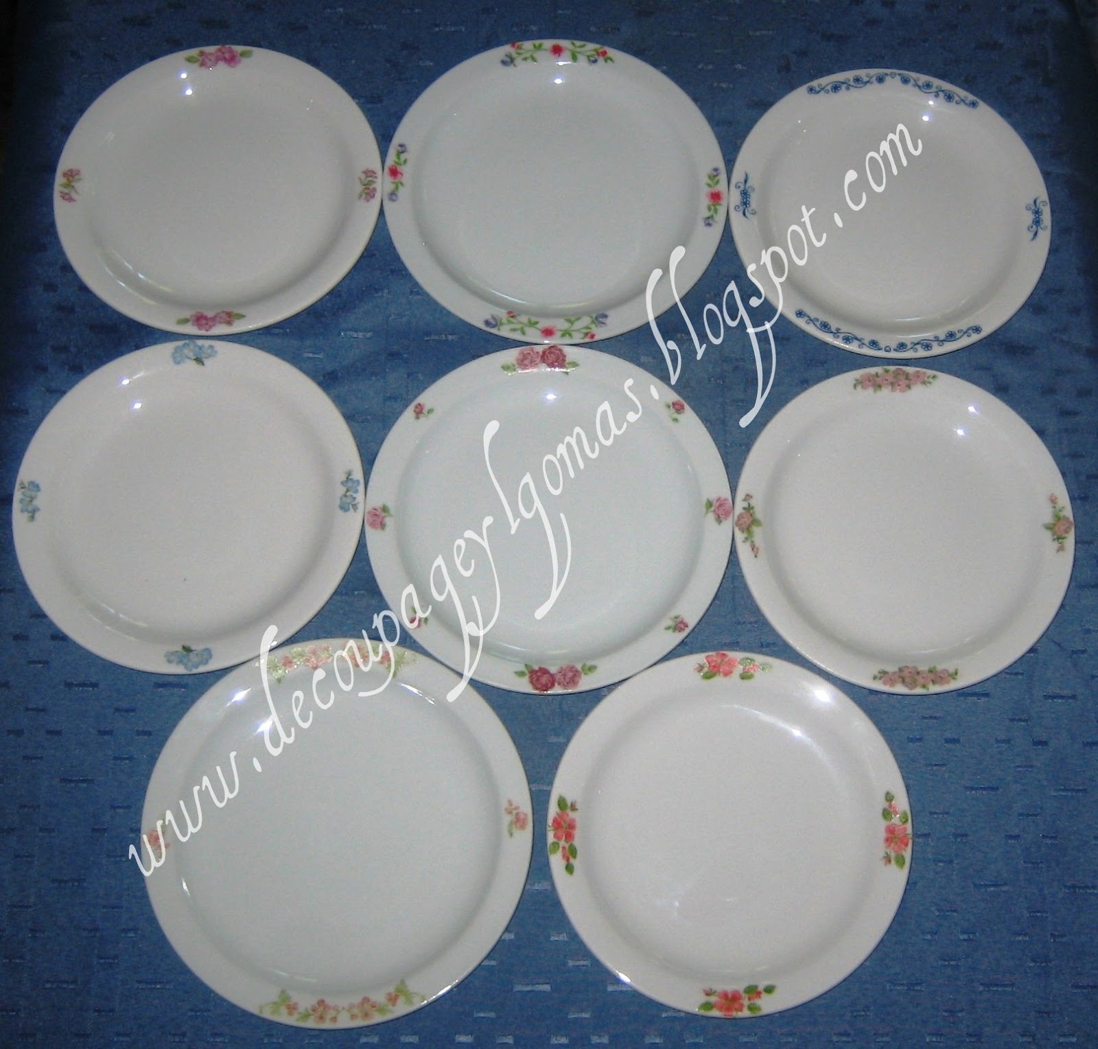 Todo bien difícil de decorar en las partes blancas y aún más complicado encontrar un motivo de servilleta que combinara en cada uno.