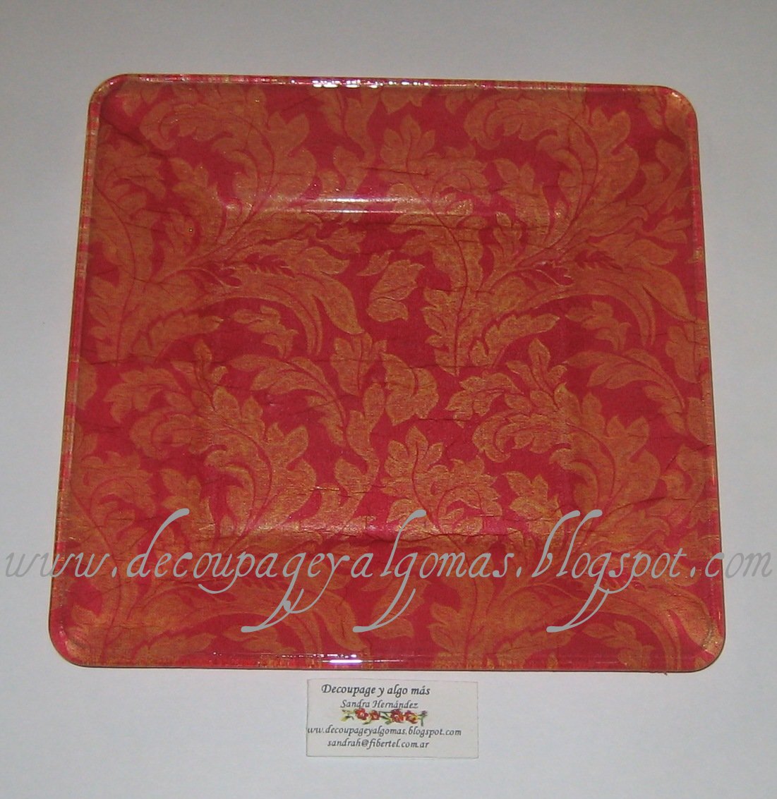 El desafío consistía en: María elegiría "algo" que fuera sencillo de pintar para ella y difícil de decorar con decoupage para mí y me lo pasaría, y yo elegiría "algo" fácil de decorar con decoupage por mí y difícil de pintar para ella y se lo enviaría.
